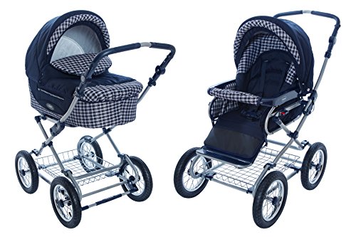 - Product Name: Roan Kortina Classic Pram Stroller 2-in-1 with Bassinet and Seat - Navy - Chequered